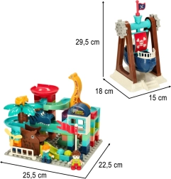 Set obsahuje rôzne komponenty v tvare zvierat, čo pridáva zábavný a výchovný prvok. Vďaka prístavu s loďou dodá hra nádych dobrodružstva a umožní deťom tvoriť dobrodružné príbehy. Je ideálny pre spoločné chvíle s rodinou, kde môžu deti vytvárať jedinečné trasy pre guľôčky a sledovať ich pohyb, čo stimuluje ich zvedavosť.