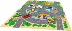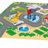 Táto herná mapa ponúka deťom pestrý svet príbehov a dobrodružstiev. Textilné prevedenie je príjemné na dotyk, ľahko sa skladá a ukladá, zatiaľ čo kovové vozidlá zaujmú svojou odolnosťou a realistickým spracovaním. Vďaka kompaktným rozmerom je set ideálny na doma, do škôlky aj na výlety.