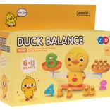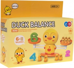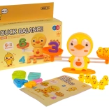 Táto múdra hra spája učenie s hrou. Deti kladú na jednu misku váh číslice a na druhú zodpovedajúci počet kačičiek tak, aby váha zostala v rovnováhe. Prirodzene tak chápu princíp sčítania a odčítania, porovnávanie hmotností aj fungovanie dvoramennej váhy.