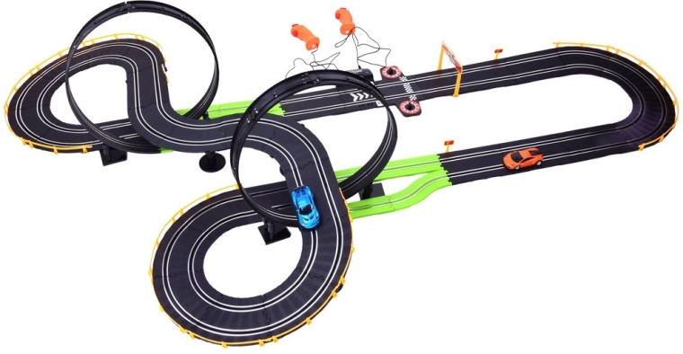 Závodná dráha obsahuje dve veľké slučky, ktoré prinášajú vzrušenie a pocit rýchlosti, ideálne pre malých aj veľkých fanúšikov.