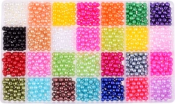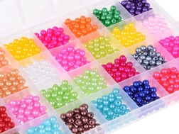 Vytvorte si svoje jedinečné šperky s našou sadou korálok, ktoré sa dokonale hodia na výrobu náhrdelníkov, náušníc alebo prsteňov. Korálky majú hladký povrch, ktorý odráža svetlo a jemne sa trblieta. Sú dostupné v širokej škále farieb, od klasickej bielej, cez pastelové odtiene ružovej, modrej, zelenej až po intenzívne farby ako je fialová, červená alebo zelená.