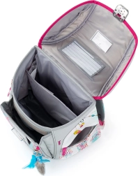 Ľahký a praktický 3-dielny školský set s motívom koňa pre najmladších školákov. Obsahuje priestranný batoh 27 l o hmotnosti len 900 g s ergonomickým chrbtovým systémom, hrudným popruhom a reflexnými prvkami, ďalej vrecko na cvičky a jednoposchodový peračník bez náplne.