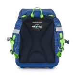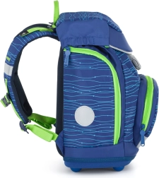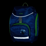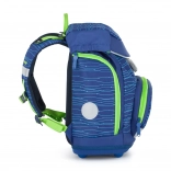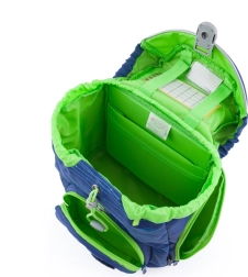 Set OXY Sherpy Blue je spoľahlivá voľba pre deti od 1. do 3. triedy. Hlavná komora so sťahovacou šnúrkou a magnetickým zapínaním umožňuje ľahké otváranie jednou rukou, vnútorný rozdeľovač udržiava poriadok v učebniciach a zošitoch. Predné vrecko na desiatu a bočné vrecká na zips poskytujú ďalší prehľadný úložný priestor.