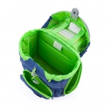 Ergonómia je na prvom mieste: anatomicky tvarovaný chrbtový panel (dĺžka 33 cm), polstrované ramenné popruhy a nastaviteľný hrudný popruh podporujú správne držanie tela. Pevné dno s plastovými nožičkami zabraňuje prevráteniu, reflexné prvky zvyšujú bezpečnosť pri chôdzi do školy aj domov. Vďaka vymeniteľným odznakom na suchý zips si deti ľahko doladia vzhľad batohu.