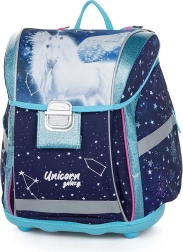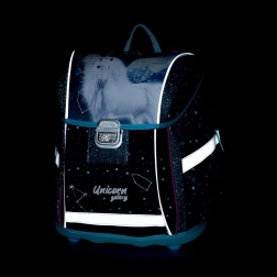 - Aktovka: Anatomicky tvarovaná a príjemne polstrovaná, zaisťuje správne usadenie na chrbte. Je vybavená vyztuženým chrbtom a vnútornou výstužou pre stály tvar. Aktovka má jednu priestrannú komoru na všetky školské pomôcky a pevným dnom pre stabilitu. Zapínanie na bezpečnostnú pracku a reflexné prvky pre zvýšenú viditeľnosť.