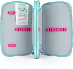 Praktické dvojposchodové školské puzdro bez náplne s motívom Unicorn Iconic ponúka 25 gumených pútok na prehľadné uloženie písacích potrieb. Má pevný zips s veľkými tiahlami na ľahké otváranie a jedno poschodie s priehľadným vreckom na týždenný rozvrh.