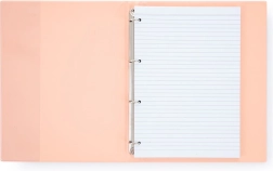 Praktický krúžkový zápisník KARIS vo formáte A5 v elegantnej marhuľovej farbe. Odolný PVC obal, pohodlná 4-krúžková mechanika a 100 linajkovaných listov na prehľadné poznámky do školy, práce aj na cesty.