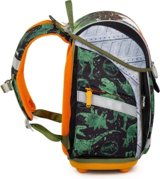 Štýlový školský batoh Premium Light v dinosaurom štýle nadchne deti výraznou grafikou T-Rexa a rodičov osloví špičkovou ergonómiou. Odľahčená konštrukcia s priedušným polstrovaním chrbta a širokými, mäkčenými popruhmi zabezpečuje pohodlné a zdravé nosenie každý deň. Sťahovacie a hrudné popruhy pomáhajú rozložiť hmotnosť a udržať batoh stabilne na chrbte.