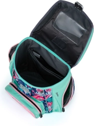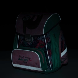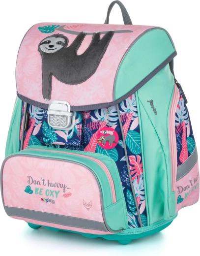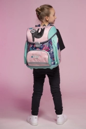 Taška disponuje hlavnou priestrannou komorou, ktorá pojme všetky nevyhnutné pomôcky pre prvú a druhú triedu. Predná vrecko je vhodné pre desiatu. Zatváranie na bezpečnostnú pracku zabezpečuje ľahké otváranie a zatváranie tašky.