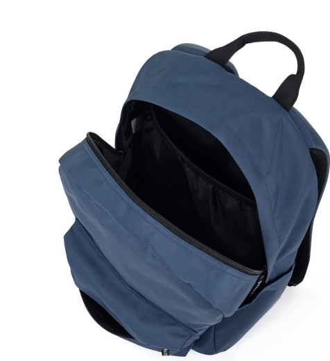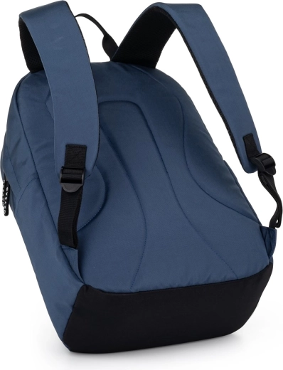 Čisté línie, sýtomodrá farba a decentné logo Oxybag robia z batohu univerzálny doplnok do školy aj do mesta.