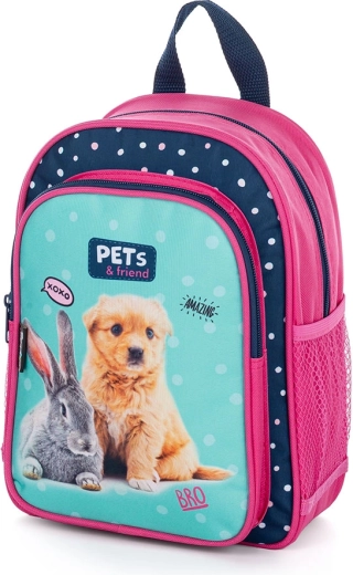 Ľahký a pohodlný detský batoh s motívom maznáčikov pre predškolákov od 3 do 6 rokov. Ponúka jedno priestranné hlavné vrecko, menšie vrecko na desiatu a bočné vrecká na fľašu. Ideálny na krúžky, výlety aj do škôlky.