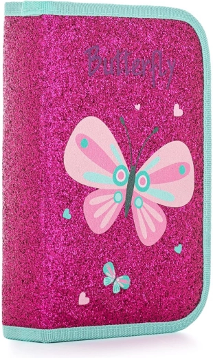 Jednoposchodový školský peračník s flitrovým efektom, motív motýľa, 2 chlopne