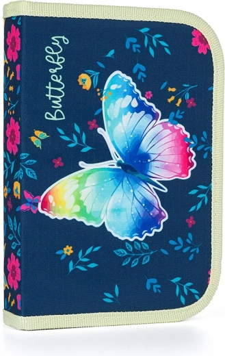 Elegantný školský peračník s motívom motýľa a dvoma chlopňami je ideálny na každodenné používanie. Ponúka 25 gumených pútok na prehľadné uloženie písacích potrieb a priehľadné fólie na rozvrh hodín. Ľahký, praktický a prehľadne usporiadaný peračník pre školákov.