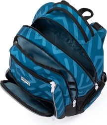 Batoh ponúka priestranné vnútorné vrecká pre učebnice a zošity a ďalšie vrecká pre osobné veci. Elegantné čierne zipsy dopĺňajú celkový vzhľad batohu.