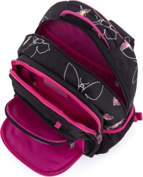 Hlavná komora, menšie vrecká, držiak na kľúče/čip a dve bočné vrecká na fľašu a drobnosti udržia školské potreby prehľadne na svojom mieste.