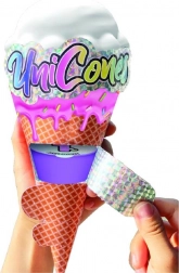 UNICONES je hravý kornút plný radosti – rozbaľuj jednu časť za druhou a objavuj, čo sa skrýva vo vnútri. Každý kornút zahŕňa roztomilého jednorožca, sadu doplnkov na personalizáciu a porciu slizu na kreatívne hranie. Vďaka vymeniteľným prvkom si dieťa môže postavičku zdobiť a znova kombinovať doplnky podľa nálady.