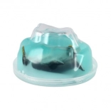 Sliz je uložený v priesvitnom plastovom „ľadovci“, ktorý zdôrazňuje arktickú tému.
