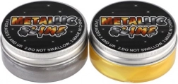 Metalický sliz je k dispozícii v dvoch oslnivých farbách – striebornej a zlatej. Každá farba prináša svoju vlastnú jedinečnú atmosféru.