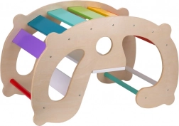 Montessori hojdačka 2 v 1 kombinuje príťažlivý dizajn s funkčnosťou. Vďaka svojej multifunkčnosti u detí podporuje obratnosť a koordináciu pohybu, čo je kľúčové pre ich vývoj.