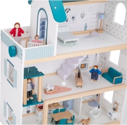 Domček je vybavený viacerými miestnosťami a funkčným výťahom, čo poskytuje deťom realistický a obohacujúci zážitok.