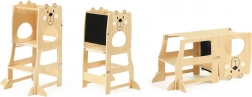 Učiaca veža Medvedík 3 v 1 ponúka viacúčelové využitie, ktoré deťom umožní zlepšovať svoje motorické zručnosti. Pomocou tejto veže môžu deti získať nezávislosť pri rôznorodých činnostiach. Veselý dizajn a robustná konštrukcia z FSC® certifikovaného dreva zaručuje nielen estetickú príťažlivosť, ale tiež ekologicky zodpovedný výber materiálov.