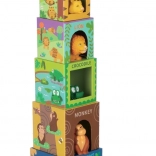 Táto sada 6 kociek ponúka každému dieťaťu možnosť objaviť exotické zvieratká z ďalekých krajín. Vďaka ich skladnosti a vybranému materiálu sa zvieratká stávajú ideálnymi spoločníkmi na cestách a pri kúpaní (pozor, kartón nesmie prísť do styku s vodou!).