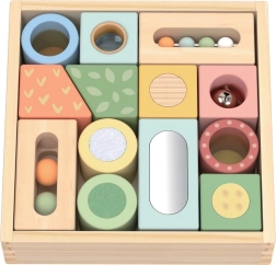 Objavte kúzlo týchto zmyslových kociek navrhnutých tak, aby rozvíjali detskú zvedavosť a predstavivosť. Každá kocka je zhotovená z kvalitného dreva s certifikáciou FSC4; zaisťujúceho ekologickú zodpovednosť produktu. Vďaka rôznorodosti materiálov a textúr sa deti naučia rozoznávať a odlišovať viacero prvkov vo svojom prostredí.