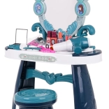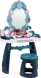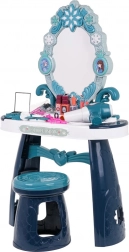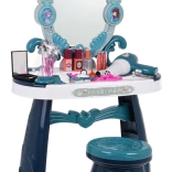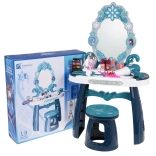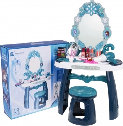 Interaktívny toaletný stolík s príslušenstvom a stoličkou, pre deti od 3 rokov. Sada je vyrobená z najkvalitnejšieho plastu v živých farbách. Okrem krásneho toaletného stolíka s doskou a zdobeným zrkadlom máme pre malé parádnice aj pohodlnú stoličku. Súčasťou balenia je fén a bohatá sada maliarskych doplnkov. Toaletný stolík je napájaný 3 x AA 1,5 V batériami (nie sú súčasťou balenia), fén 1 x AA 1,5 V batériou (nie je súčasťou balenia). . . Funkcie súpravy: