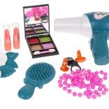 - toaletný stolík, .- taburet, .- fén, .- korálky, .- náramok, .- 2 x atrapa rúžu, .- atrapa laku na nechty, .- atrapa parfumu, .- nádobka na kozmetiku, .- 2 x sponka do vlasov, .- kefa na vlasy, .- 4 x krúžok, .- kozmetická taštička so zrkadielkom, štetcom a atrapou tieňov, - 4 x štetec na maľovanie, . |