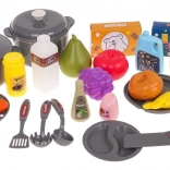 - Kuchynka, tlakový hrniec, hrniec s pokrievkou, 3× plech, tanierik, 2× krabička so sušienkami, kelímok, lopatka, lyžica na cestoviny, naberačka, veľký nôž, soľ, korenie, kečup, horčica, olej, 2× korenička, rybia omáčka, fľaštička na vodu, makety potravín (paradajka, mrkva, kura, ryba, hruška, hrozno, 2× pusinka, koláčik), dekoratívne samolepky