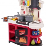 Súčasťou je tiež funkčný kohútik s tečúcou vodou, aby si deti mohli „umyť“ riad ako v skutočnej kuchyni. Nechýba otváracia rúra, otvárací gril, množstvo poličiek na uloženie potravín a bohaté príslušenstvo vrátane hrncov, panvíc, náradia a makiet potravín.