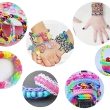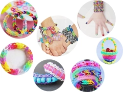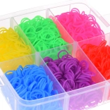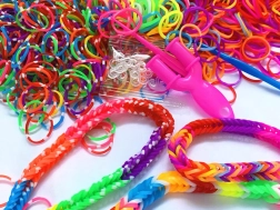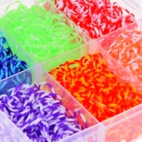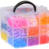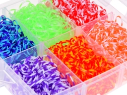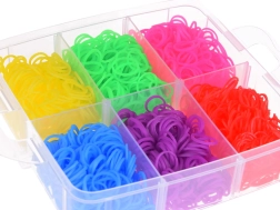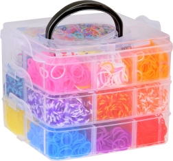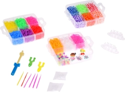 - cca 4500 ks gumičiek, priehľadné spájacie háčiky, farebné/pastelové koráliky, 6× malé háčiky, 1× veľký háčik, 2× prak, 2× krosno, 6× silikónový prívesok, priehľadný organizér s priehradkami