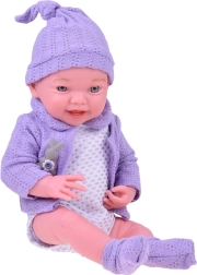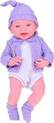 Roztomilá bábika bábätko s výškou 40 cm poteší každé dieťa realistickým vzhľadom a príjemným dotykom. Má pohyblivé končatiny, detailnú tváričku a je oblečená do fialového svetríka s čiapočkou, body a mäkkých ponožiek. Skvelá na hru na starostlivosť, rozvoj empatie a fantázie.