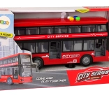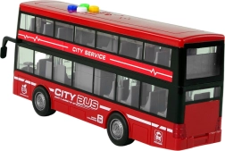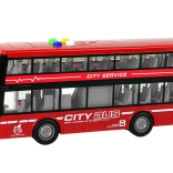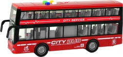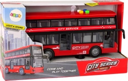 Tento detailne spracovaný dvojposchodový autobus v mierke 1:16 poteší všetkých malých vodičov mestskej dopravy. Na streche nájdete štyri interaktívne tlačidlá, ktoré spúšťajú reálne zvuky – klaksón, signál cúvania a ruch ulice. Interiér je podsvietený LED a postupne mení farby na červenú, zelenú a modrú, čo vytvára pôsobivú atmosféru pri hre.