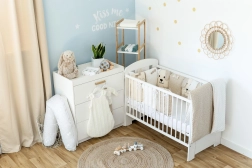 Kombinácia béžových a bielych tónov s moderným dizajnom vnesie do detskej izby pokojnú a harmonickú atmosféru.