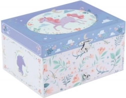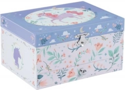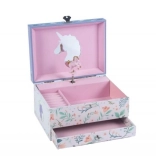 Šperkovnica s hracou skrinkou je perfektným darčekom pre deti, ktoré majú rady kúzelné a originálne doplnky. Po otvorení skrinky sa rozoznie melódia a s ňou sa roztočí nádherný jednorožec.