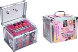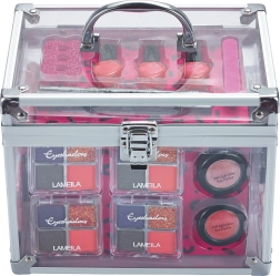 Štýlový detský kozmetický kufrík s veľkosťou 22 cm poteší malé parádnice kompletnou výbavou na prvé líčenie a hru na salón krásy. Obsahuje pestrú sadu doplnkov vrátane lakov na nechty, očných tieňov, leskov na pery a praktického zrkadielka – všetko na bezpečné a zábavné experimentovanie.
