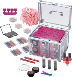 - Laky na nechty, rozdeľovač prstov, očné linky, pilník na nechty, rúže, zrkadielko, lesky na pery, očné tiene, lícenka, púder