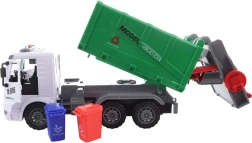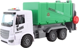 Plastové popelárske auto na batérie. Pomocou dvoch tlačidiel umiestnených na kabíne vydáva zvuky jazdy a cúvania. Obsahuje 2 nádoby na odpad, pomocou kolieska možno nádoby vysypávať. Batérie 3x AG13 sú súčasťou balenia. Manuálne možno otvárať zadnú časť nádoby na odpad. Balené v krabici. Rozmery balenia cca 32 × 11,5 × 18,5 cm. Rozmery auta cca 28 × 14 × 8,5 cm. Vek 3+