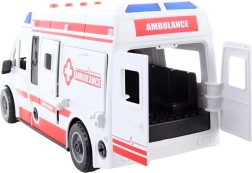 Model je napájaný 3× AG13 (súčasť balenia) a ponúkne štyri zvukové režimy – siréna, klaksón, štart a melódia. Otváracie dvere na strane vodiča aj vzadu uľahčia nakladanie „pacientov“ na nosidlá a prístup do kabíny.