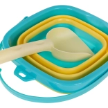 Praktická súprava do piesku pre deti od 3 rokov obsahuje skladacie vedierko a lopatku – ideálna do pieskoviska aj na pláž. Vedierko z plastu a silikónu je ľahko skladné, bezpečné a odolné, takže ho môžete vziať kamkoľvek so sebou.