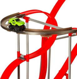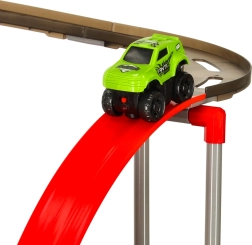 Zelené autíčko zahrnuté v sade je špeciálne navrhnuté na prekonávanie extrémnych tratí. Jeho motor je poháňaný dvoma batériami AAA (nie sú súčasťou balenia), čo umožňuje plynulú a ľahkú jazdu po zložitých úsekoch trasy.