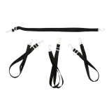 Nastaviteľné pásky s kovovými prackami udržia terče pevne na mieste. Odolná textília zvládne aj divokejšie súboje.