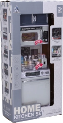 - Obsahuje: umývačku riadu, mikrovlnnú rúru, skriňu, hriankovač, riad, jedlo a nápoje.