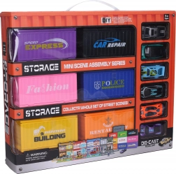 Predstavujeme vám Kontajnerové mesto, ktoré je ideálne pre malých staviteľov a zberateľov autíčok. Súčasťou balenia je: