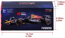 Precízna potlač sponzorov, aerodynamické prvky a farebné akcenty presne zodpovedajú skutočnému vozidlu RED BULL RACING RB19 #11.