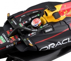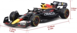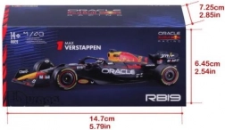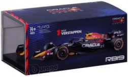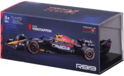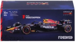 Užite si špičkovú repliku šampiónskeho monopostu RED BULL RACING RB19 (2023) v ikonickom čierno‑modrom prevedení s červenými a žltými akcentmi. Model v mierke 1:43 verne zachytáva aerodynamické krivky, detaily kolies a presné sponzorské polepy vrátane Oracle. Súčasťou je aj figúrka jazdca Max Verstappen v kokpite.