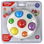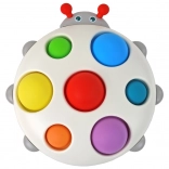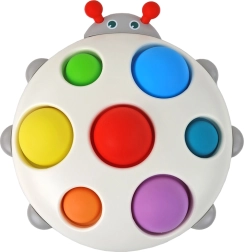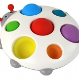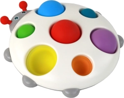 Táto senzorická tabuľa Pop It v tvare rozkošnej lienky je navrhnutá pre deti od ranného veku. Sedem výrazných farieb (žltá, zelená, červená, oranžová, žltá, modrá a tyrkysová) stimuluje zrak, zatiaľ čo príjemný odpor silikónových bubliniek rozvíja hmat a koordináciu oko–ruka. Skvelá na cesty, do kútika pokoja aj na každodenné hranie bez neporiadku.