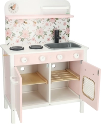 Detská drevená kuchynka Lulilo Flora je ideálna pre malých kuchárov, ktorí sa chcú ponoriť do sveta varenia. Kuchynka obsahuje dve priestranné skrinky, z ktorých jedna môže slúžiť ako rúra pre "pečenie" obľúbených jedál. Praktická polica poskytuje dostatok miesta pre všetky kuchynské doplnky.