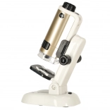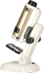 Tento mikroskop je kompaktný a ľahko prenosný, čo z neho robí ideálny nástroj na použitie doma alebo v škole.